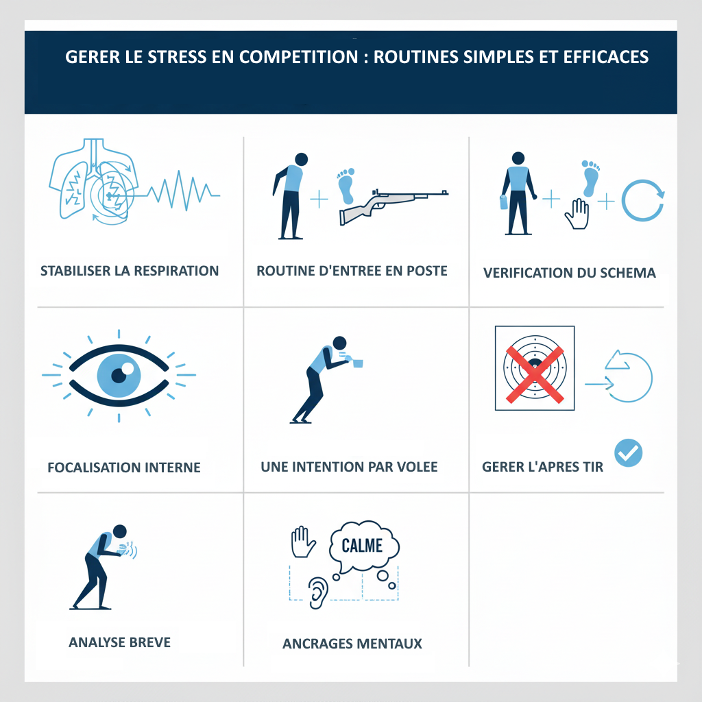 Gérer le stress en compétition : routines simples et efficaces En compétition, le stress n’est pas un ennemi : c’est une variable. Ceux qui performent ne cherchent pas à l’éliminer, mais à le stabiliser. La différence entre un tir sous pression et un tir maîtrisé se joue dans la capacité à imposer une routine mentale […]